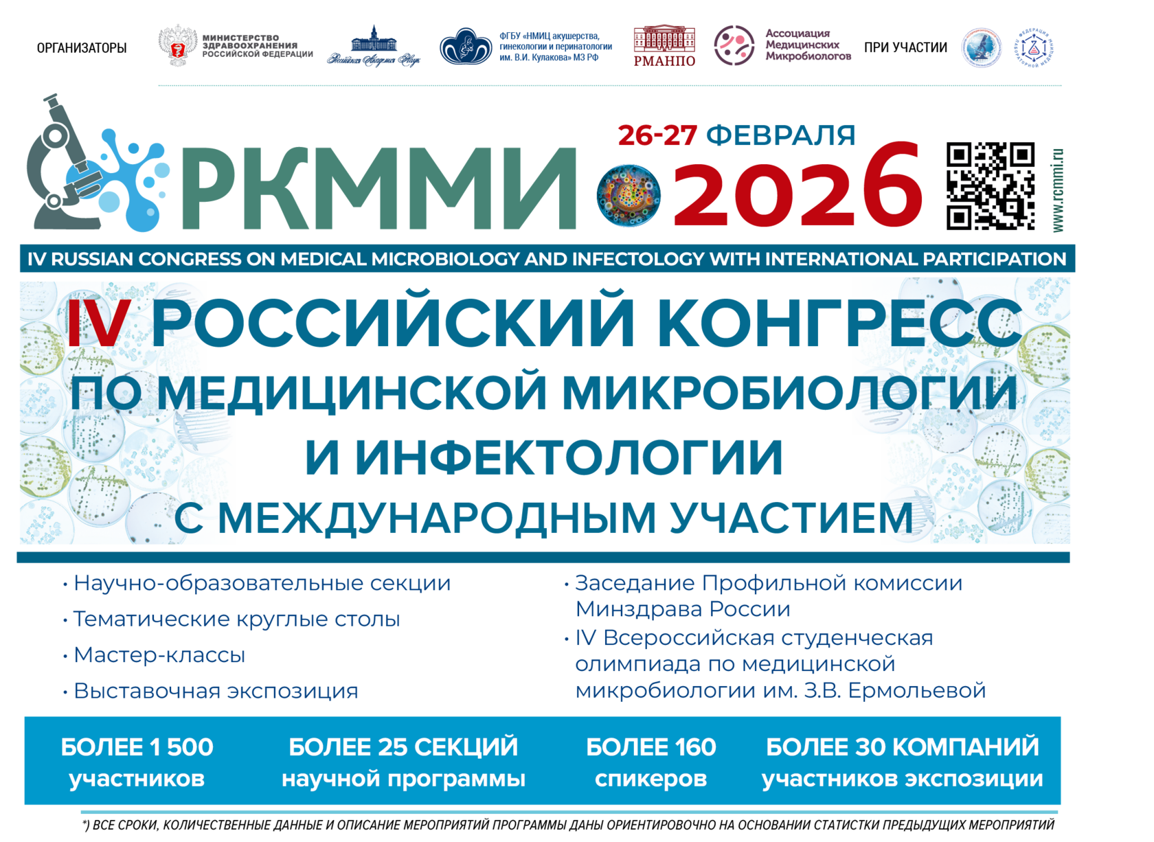 Коллеги! Открыта регистрация на IV Российский конгресс по медицинской микробиологии и инфектологии (РКММИ)! В 2026 году Конгресс пройдет 26-27 февраля в Москве, в отеле «Рэдиссон Славянская».